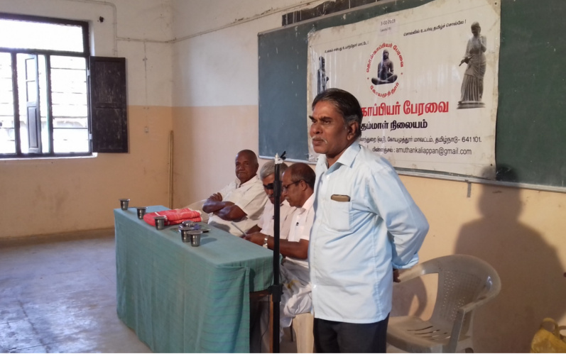 தொல்காப்பியப் பயிலரங்கம்: தொல்காப்பியச் செம்மல் புலவர் ஆ. காளியப்பன், தலைவர், தொல்காப்பியர் பேரவை.