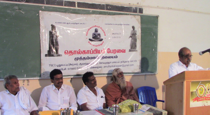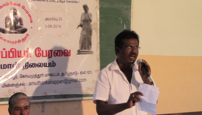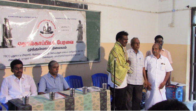 தொல்காப்பியப் பயிலரங்கம்: தொல்காப்பியச் செம்மல் புலவர் ஆ. காளியப்பன், தலைவர், தொல்காப்பியர் பேரவை.