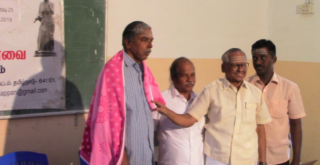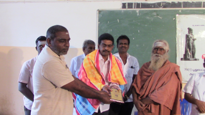 8. திருஆறுமுகத்திற்கு தேவமணி அவர்கள் பொன்னாடை அணிவிக்கிறார்