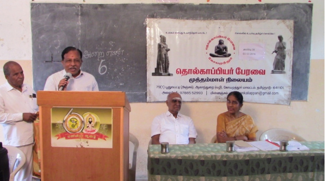 தொல்காப்பியப் பயிலரங்கம்: தொல்காப்பியச் செம்மல் புலவர் ஆ. காளியப்பன், தலைவர், தொல்காப்பியர் பேரவை.