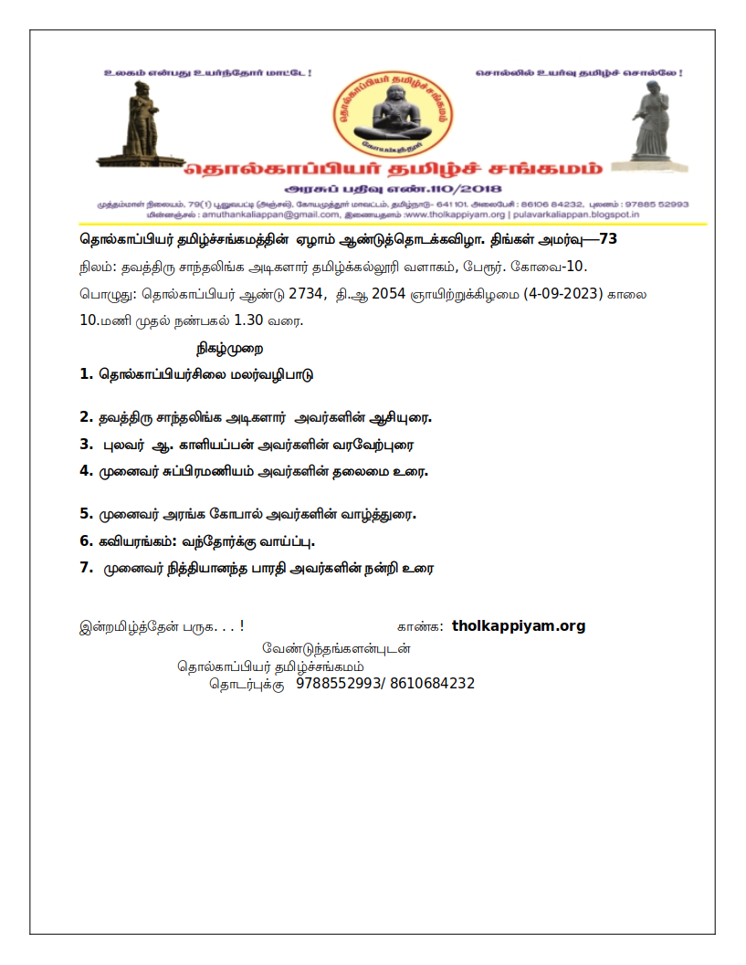 - [04-09-2023] தொல்காப்பியர் பேரவைத் திங்கள் அமர்வு-73