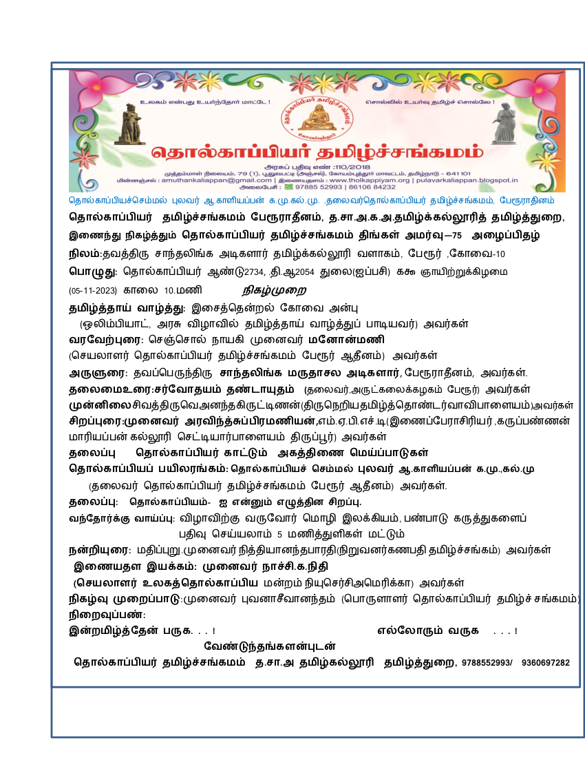 - [05-11-2023] தொல்காப்பியர் பேரவைத் திங்கள் அமர்வு-75