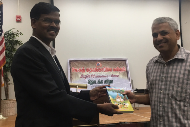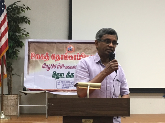 - நியூசெர்சி இலங்கைத் தமிழ் மன்றத்தலைவர் முனைவர் செல்லையா ஞானசேகரன் தலைமையுரையாற்றினார்.