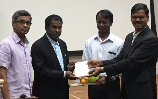 முனைவர் மு.இளங்கோவன் அவர்கட்கு முனைவர் செல்லையா ஞானசேகரன் பாராட்டுப் பட்டயம் வழங்குதல்